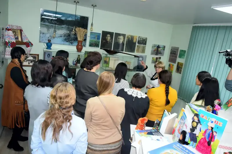 Для всех, кто приехал в Центр, было проведено две экскурсии: по экспонатам музейной выставки об истории национального образования в Горной Шории и в музей имени Таяны Тудегешевой. Обе экспозиции работают ежедневно и открыты для школьников и студентов города и области (в том числе по Пушкинской карте).